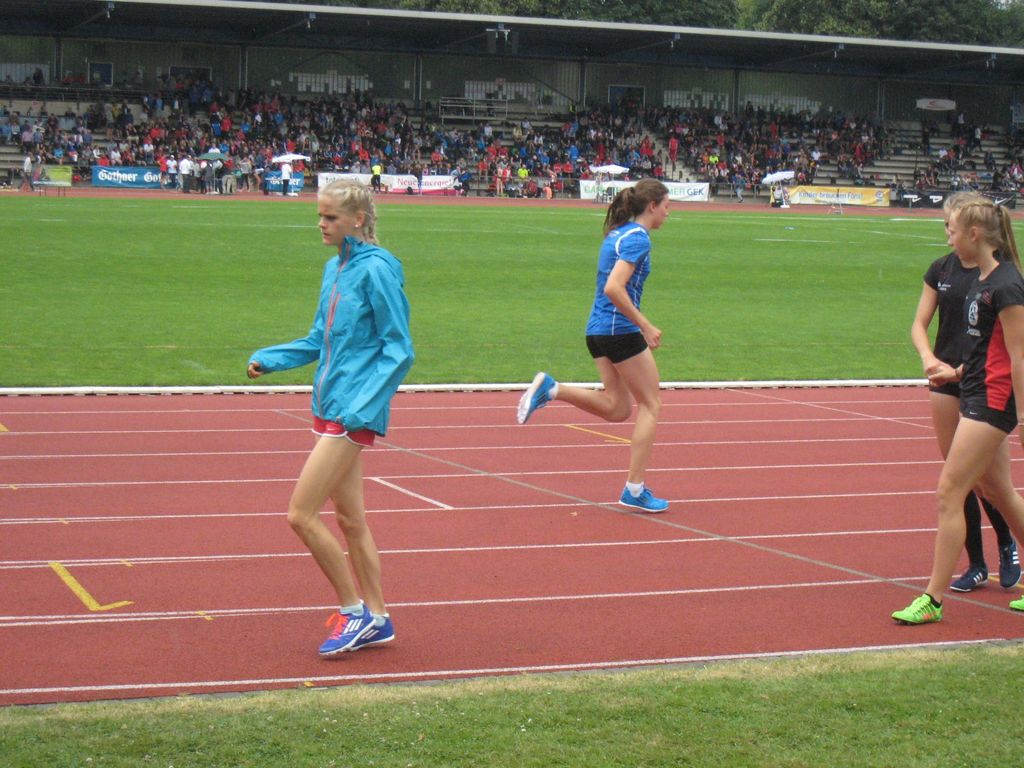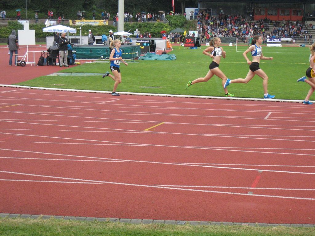 Zwei Vorläufe am Samstag aus denen sich die jeweiligen Sieger und die weiteren 10 Zeitschnellsten für den Endlauf am Sonntag qualifizierten. Die Vorläufe waren fair gesetzt,so dass schnellere und langsamere Athletinnen in jedem Lauf verteilt waren. Der erste VL. war sehr flott unterwegs und die 7. dieses Laufes lief noch eine Zeit von 4:41,75 Min. Im 2. Vorlauf mit Hanna und der Ausnahmeläuferin Alina Reh, die gleich vorneweg ihr Tempo lief, waren die schnelleren Athletinnen überhaupt nicht an einem flotten Tempo interessiert.