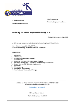 Einladung zur Jahreshauptversammlung am 26.03.2026