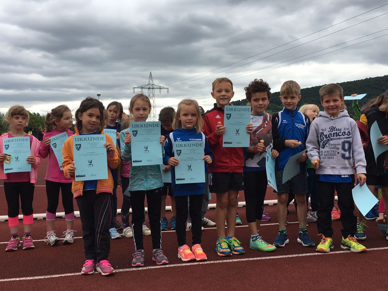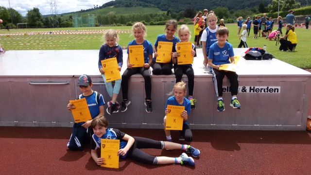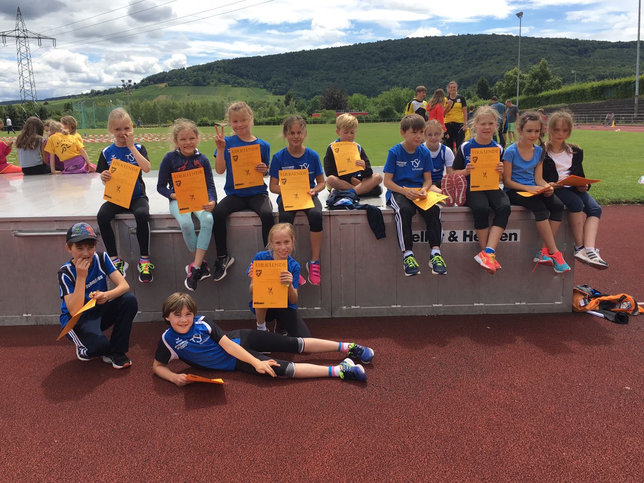 Bei kühlem Wetter traten am Vormittag zunächst die jüngsten Leichtathleten in der Klasse U8 an. Die relativ kleine Mannschaft mit Chiara Stauß, Mara Jäggle, Lillie Patzer, Hugo Frech, Christoph Völkel, Teoman Özalp und Linus Horvat waren in allen vier Disziplinen stark und gewannen so den 1. Platz!