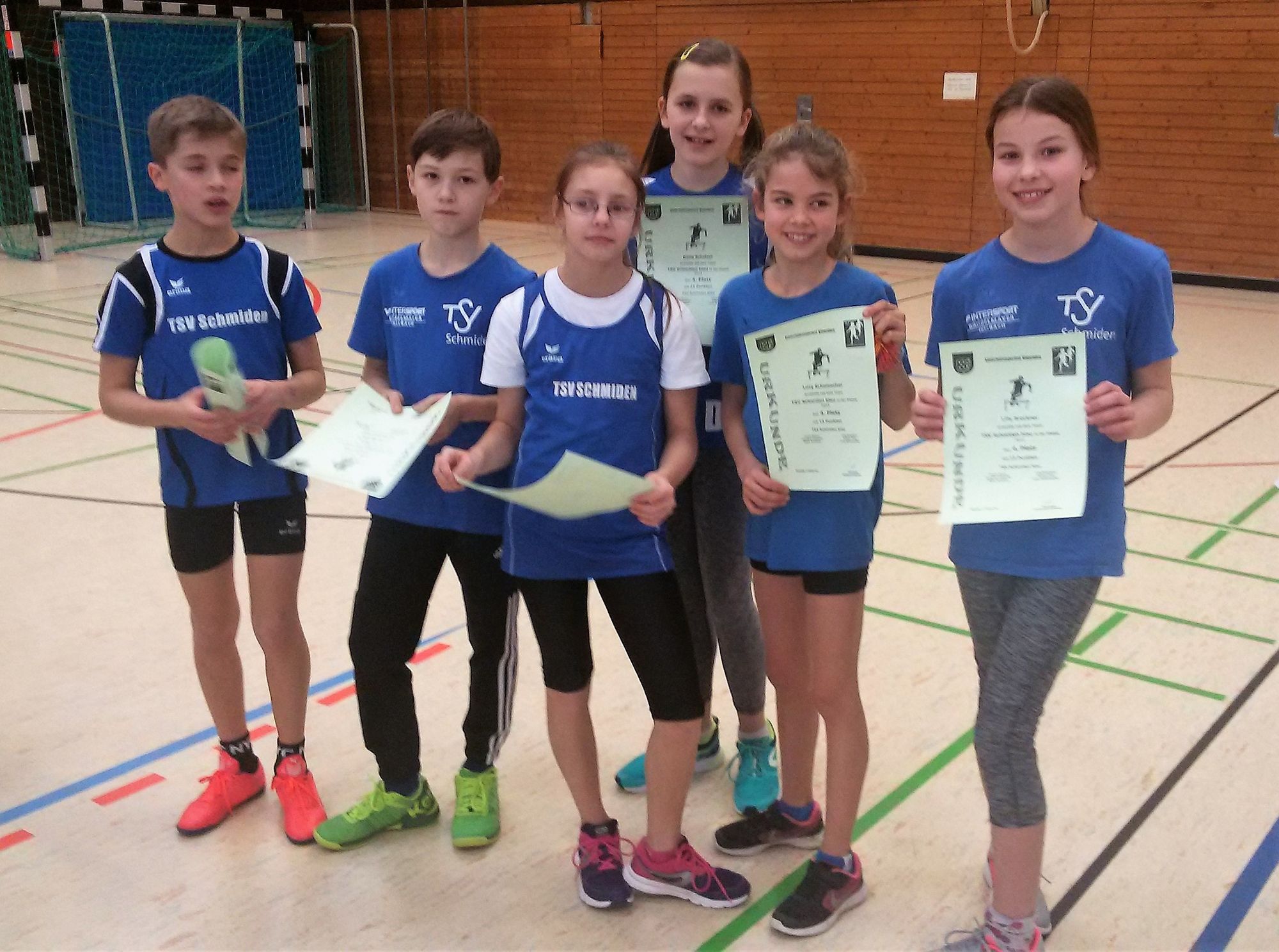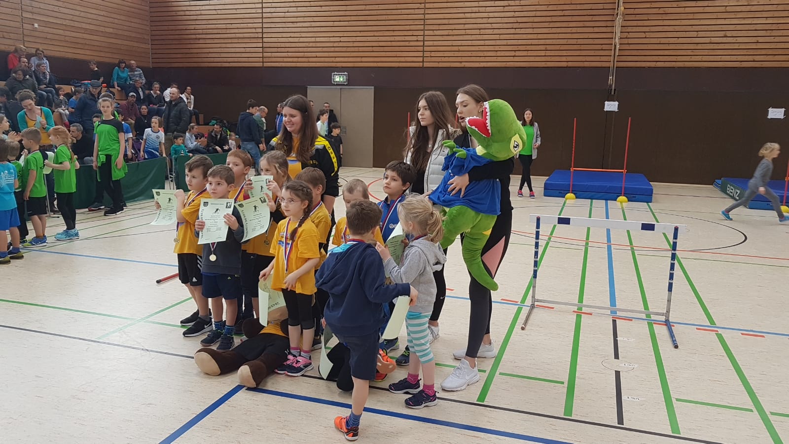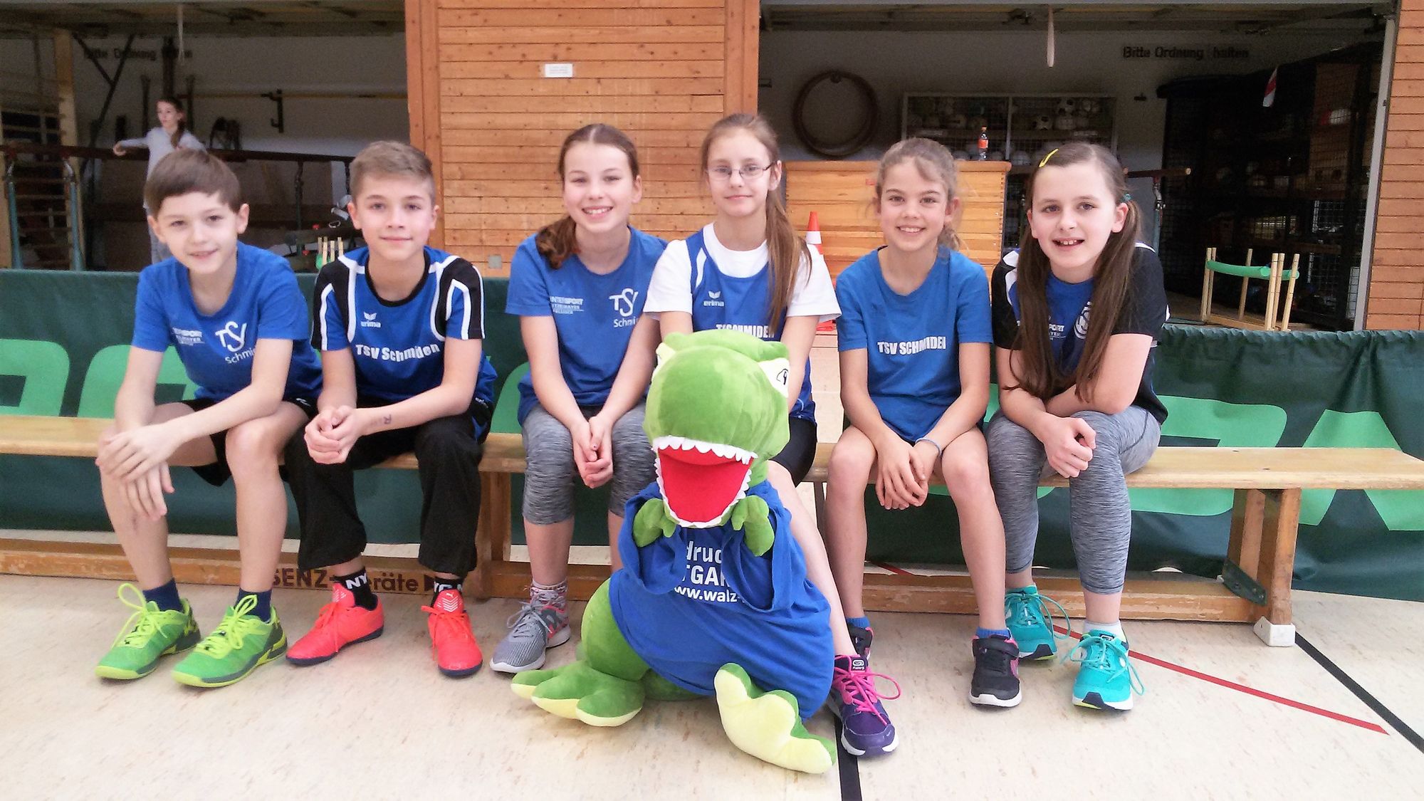 Am vergangenen Samstag (9.2.2019) fand für die Leichtathletikkinder der U8, U10 und U12 in Winnenden ein Hallenwettkampf statt. Begleitet wurden die Kinder nicht nur von ihren Trainern, sondern auch von ihrem neuen Maskottchen, dem SchmidoDino „Schmidolin“. Für die U12 war es der erste Hallenwettkampf der Saison, da beim letzten Wettkampf in Plüderhausen leider kein Team an den Start gehen konnte. Der Tag war vor allem für die Athleten der U8 sehr erfolgreich! Hier siegte das Team des TSV Schmiden gemeinsam mit einigen Kindern aus Kernen. Mit dabei waren hier Meghan und Tom Trevelyan, Marlon Träbert, Emilia Özalp und Samuel Horvat. Die kleinen Leichtathleten der erfolgreichen Startgemeinschaft konnten sehr zufrieden mit der Goldmedaille um den Hals nach Hause gehen!