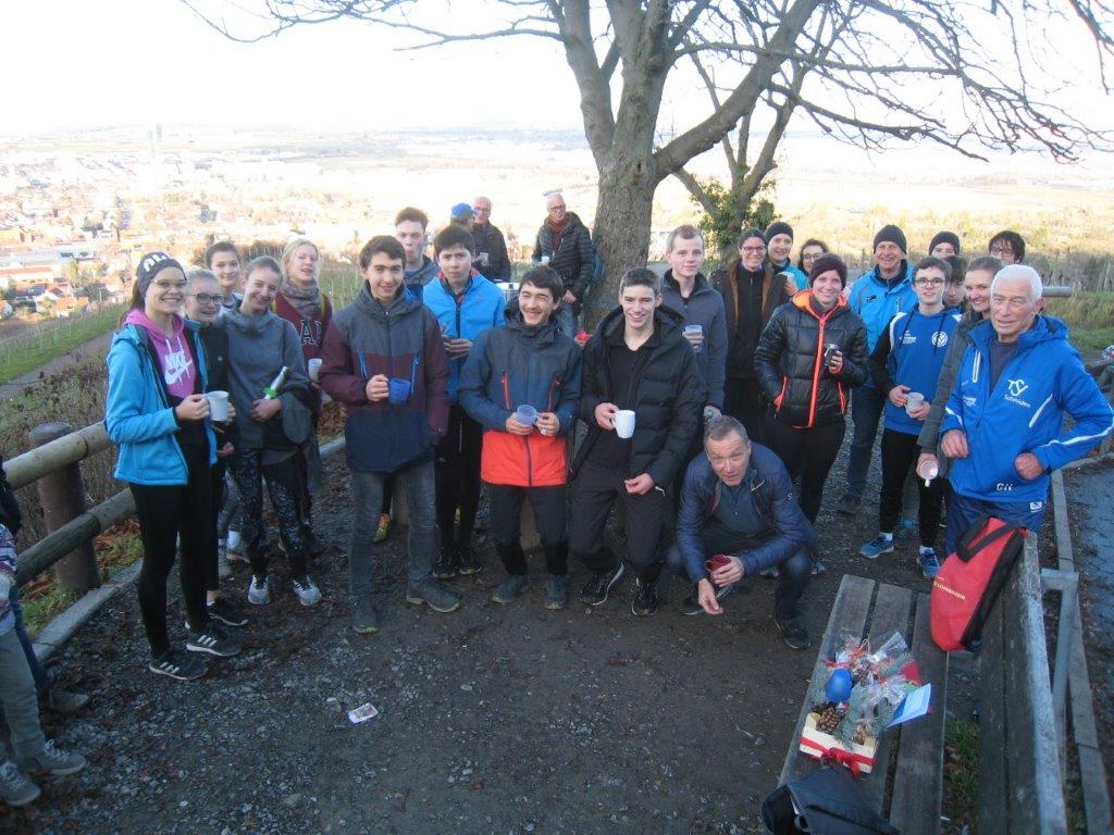 Wie seit vielen Jahren, gab es am letzten Samstag vor Weihnachten traditionsgemäß nach dem letzten Waldlauf wieder Punsch. Bei schönem Wetter mit toller Sicht trafen sich vor dem Waldschlössle aktuelle und ehemalige Leichtathleten, Senioren und Eltern in einer frohen Runde vor den Feiertagen. Erfreulich war, dass die ehemaligen Athletinnen und Athleten so stark vertreten waren. Da gab es viel über das Studium Beruf und das Private zu reden.